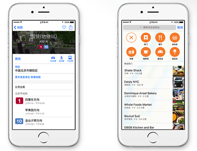 地圖 app 加入了「搜索附近」以及「公共交通導航」功能,該功能在中國支持北京、深圳、成都、武漢、廣州、西安、杭州、鄭州、上海等城市。
