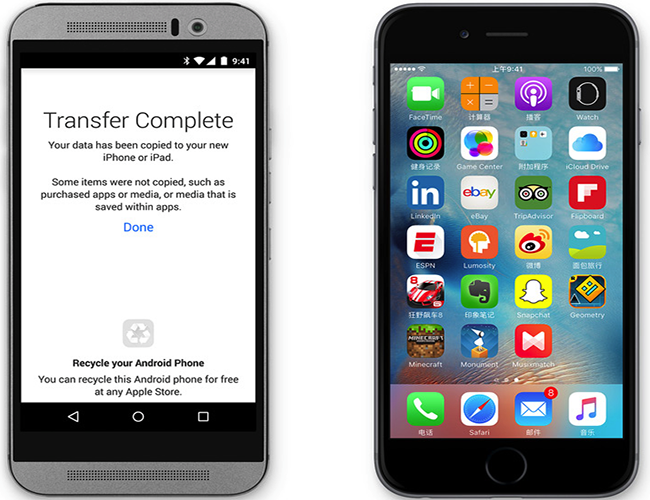 為 Android 黨准備的特性,如果你正打算從 Android 陣營轉投 iOS,蘋果提供了一個叫 Move to iOS 的 app 幫你轉移資料——通訊錄、短信記錄、照片視頻、網頁書簽、郵件賬戶、日歷、壁紙、無版權保護的音樂和電子書一次性幫你搞定。
