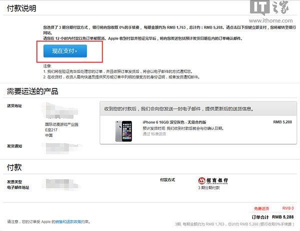 其次,目前中國大陸蘋果官網支持分期付款,最長可以做到12期無息分期,目前蘋果官網聯合招商銀行、工商銀行、農業銀行推出了“分期免息”,沒有手續費和利息的分期,再加上蘋果iPhone的價格向來比較堅挺,囊中羞澀的朋友也可以考慮這一渠道第一時間拿到iPhone6s。當然,這一渠道相對於其他三個渠道來說,是價格最高的。