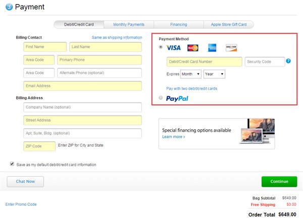 最後,你要提前想好付款方式,目前中國蘋果官網提供了借記卡、信用卡、支付寶、貨到付款、電話付款、電匯等方式,此外,你還可以選擇分期付款。