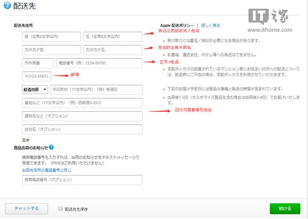 至於整體流程大致一樣,所以在此不必細說,需要注意的是,由於語言的差異,在填寫配送地址的時候,你會遇到“姓名的全角片假名”填寫這一問題,根據前人的經驗,這個地方你可以隨便填,但是要確保是全角片假名。