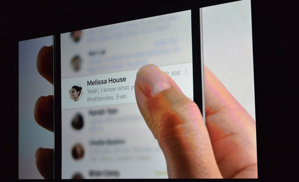 9.10 凌晨 02:30 接下來IOS開發團隊老大上來為大家介紹Force Touch,也就是“3D Touch”,3D Touch 帶來了 Peek Pop 兩種新手勢,具體功能是這樣的,用力按一個圖標會彈出一層半透明菜單,裡面包含了該應用下的一些快捷操作。在郵件列表上用力按也可以快速彈開窗口查看郵件,Apple Watch 上的 Taptic engine 也來到了新手機上面。在郵件列表當中,用力按郵件列表裡的一條郵件就會顯示完整郵件內容,松手就會關掉,無需左右滑動的打開關閉操作。根據按壓的力度,系統會做出不同的反饋。