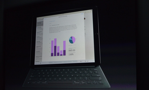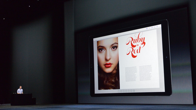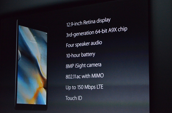 9.22 凌晨 01:22 Phil Schiller為我們帶來了史上最大的 iPad Pro,iPad Pro擁有12.9英寸屏幕和完整尺寸的QWERTY虛擬鍵盤。iPad Pro擁有12.9英寸屏幕和完整尺寸的QWERTY虛擬鍵盤,iPad Pro的寬度和iPad Air的高度一樣,手裡有的拿出來比比吧。