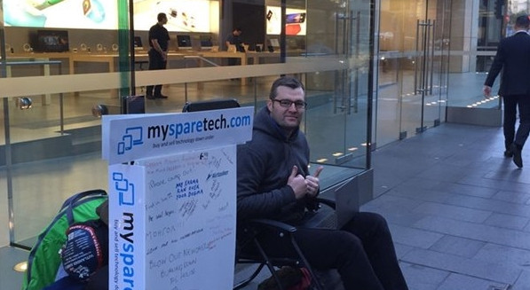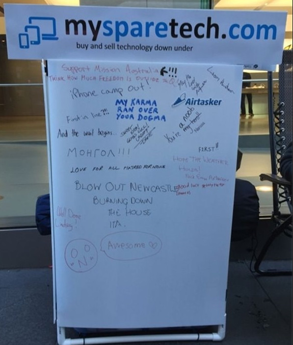 9.10 凌晨 0:23 澳大利亞已經有人開始排隊等著買iPhone 6S了!不過看照片就知道這家伙動機不純。還一個星期,慢慢排吧。