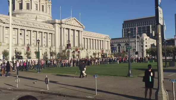 23:40 離 iPhone 6S發布會正式開始還有一個半小時,來看看比爾·格雷厄姆市政禮堂外面的人山人海。