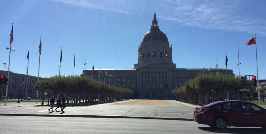 18:20 先來看兩張“比爾·格雷厄姆市政禮堂”前方記者探館照片: