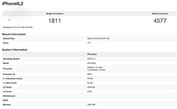 此前分析師郭明池爆料iPhone6s、iPhone6s Plus將把運行內存提升到2GB,其實,更早之前GeekBench也有iPhone6s的信息,當時顯示的是2GB RAM。