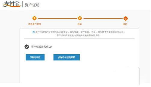 5、接下來顯示電子資產證明開具成功,可以直接下載電子版,或是發送到郵箱裡。
