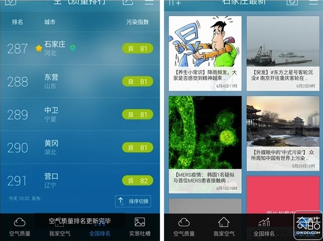 6、你所在地的空氣排名情況也可以通過APP來看到,在“實景吐槽”一欄,你還可以查看最新的相關新聞,總的來說這款APP配合產品使用還是非常不錯的。