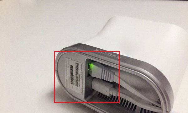 kisslink路由器安裝相當簡單,只需要將電源線和網線插入到底部的電源和網卡接口就可以了,如下圖所示。
