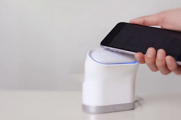 二.此時將智能手機輕輕觸碰吻一下kisslink路由器,如下圖所示。