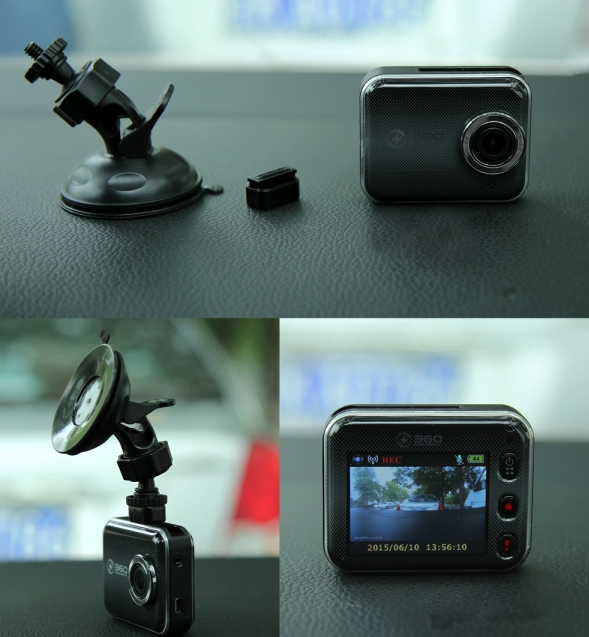 雖然 299 的價格讓我它的外觀沒抱有多高的期望,但是真將 360 行車記錄儀拿在手上時還是覺得它蠻精致的,火柴盒般的大小加上圓角矩形的立方體造型,活像一個運動攝像機。令我意外的是如此低價的產品居然也配備了一個彩色屏幕和內置電池,這樣即便不接通外接電源,我也可以用它來拍攝一小段時間的視頻或圖片,或者通過機身的彩色屏幕觀看回放錄像,這簡直是不給山寨廠商留活路的節奏啊。