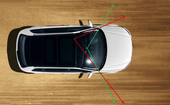 △紅色為駕駛員在汽車A柱之間的視角,綠色為360行車記錄儀視角。