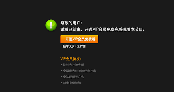 點擊觀看,隨便點一集,然後就會彈窗進入愛奇藝官網,提示購買會員,當然咯,開通會員之後就能直接觀看12集全部的內容了: