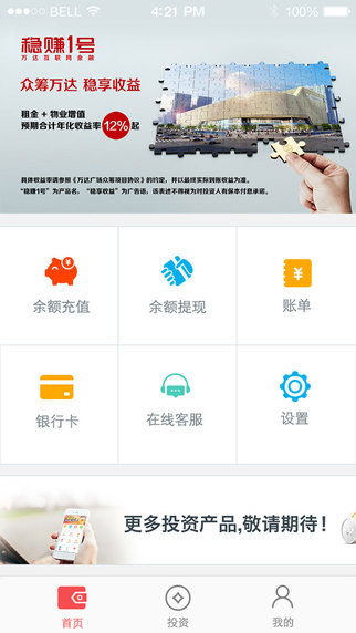隨著P2P理財熱潮的到來,各種互聯網理財產品如雨後春筍般冒了出來,今天PC6小編給大家介紹的是萬達與快錢合作推出的“穩賺1號”眾籌項目,那麼什麼是“穩賺1號”呢?“穩賺1號”又怎麼購買呢,請看下面詳細介紹: