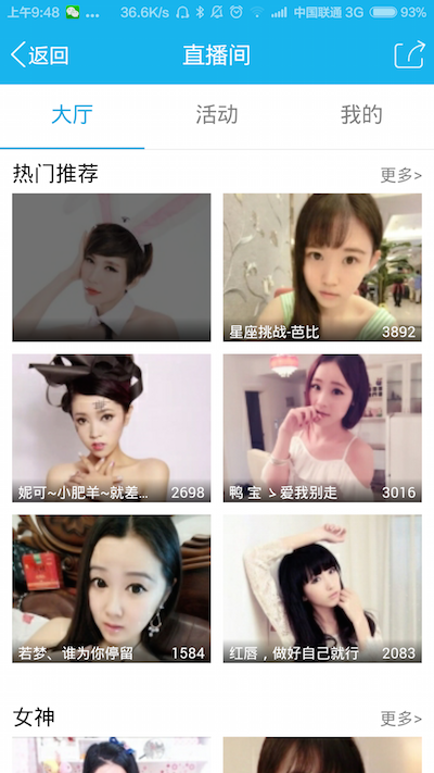 第二步:點擊進入直播間,就會看到很多主播的直播頁面: