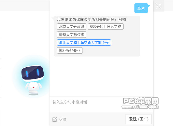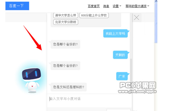 輸入後點擊發送,有趣的智能機器人百小度就會馬上回復我們了,當然畢竟是個機器人,有時也會答非所問的哦。