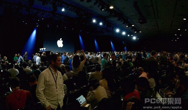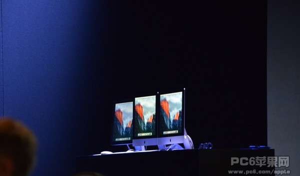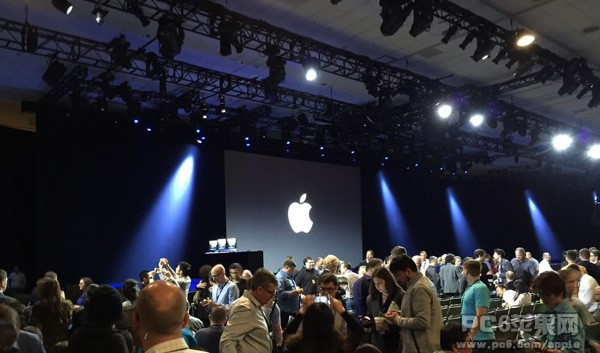前方主席台上擺著三台iMAC,或許代表著今天將要發布的iOS9、OS X、Watch OS。