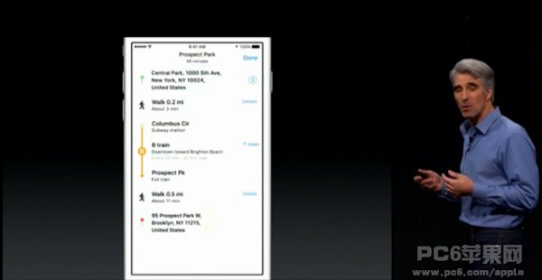 蘋果地圖中加入了公交換成等功能,可以選擇地鐵、公交、步行等多種出行方式,並且特別強調了這個功能在中國也可以使用。
