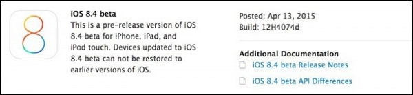 在iOS 8.3正式版發布僅僅5天之後,蘋果便開始向開發者推送了iOS 8.4的首個測試版更新(編譯號12H407d)和Xcode 6.4測試版。