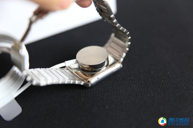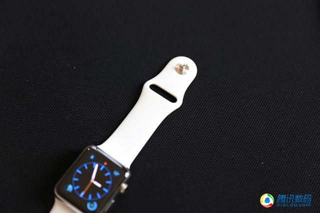 其實無論哪款表帶都暗藏一個玄機,在表帶根部與表殼“接壤”的部分,有三個橡膠凸起,起到固定作用,中間那個是可以按下去的,拆卸表帶完全靠它。我試了在裝上表帶的時候你不能用力過猛,否則就從另一側滑出去了,而表帶裝好的到位感非常輕微,你要仔細感覺,如果錯位的話你可能用肉眼都觀察不出來,我不敢想象如果跑步的時候Apple Watch從手腕上甩出去是什麼景象。