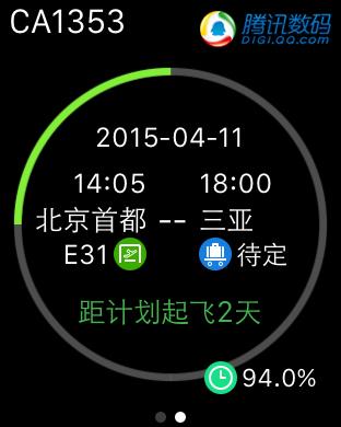 在Apple Watch的表盤界面,上滑的時候提供了Glance快捷視圖,你可以把常用的軟件放到這裡,而且它會記錄你的使用習慣,下次打開的時候還是這個位置,省得在十幾個軟件裡面反復滑動切換了,雖然這個視圖只能預覽,沒有更詳細的操作,但像“航旅縱橫”那樣看看航班信息還是足夠了,而且這裡的載入速度相比打開軟件更快。