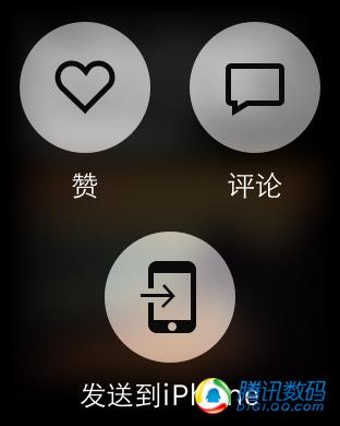 其實在發布會之後我對於Apple Watch版微信有各種猜想,但怎麼也沒想到能在手表上看朋友圈,你敢說自己泡在微信50%以上的時間不是在看朋友圈嗎?你敢說自己獲取信息的重要來源不是朋友圈嗎?所以,在簡化之後這個重要的功能還是搬到了Apple Watch上,你可以用表冠滾動朋友圈的內容,我覺得比觸屏操作還爽呢,甚至還能通過Force Touch操作點贊或評論(當然是語音輸入),就差加上一條“本評論來自於Apple Watch”了。而且還能把朋友圈的消息“發送到iPhone上”,也就是說當你看到一條重要的信息,可以保存到手機上,畢竟手表的預覽效果不如手機,相信這也是微信團隊為Apple Watch做出的特殊考量。