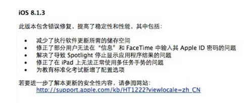 先來看看iOS8.1.3更新了什麼把