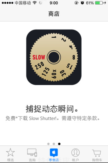 然後,向右拉動至第三個幻燈片,你會發現我們想要的東西 Slow Shutter! App 出現了,點擊進入免費兌換即可。