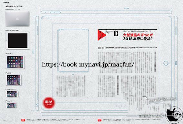 連發布日期都有傳,介於明年4-6月份之間。設備的尺寸厚度為305.31 x 220.8 x 7mm。同樣一篇傳聞裡面還包含了iPad mini 4。Mac Fan 表示,iPad mini 4將搭載A8X處理器。