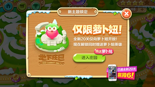 另外值得一提的是:本次IOS版更新後,游戲內的活動中為玩家准備了iPhone 6重磅大禮,只要玩家下載更新游戲後,完成“地下莊園”通關即有機會抽獎iPhone 6,趕緊跟小伙伴們分享這個好消息贏取手機吧!