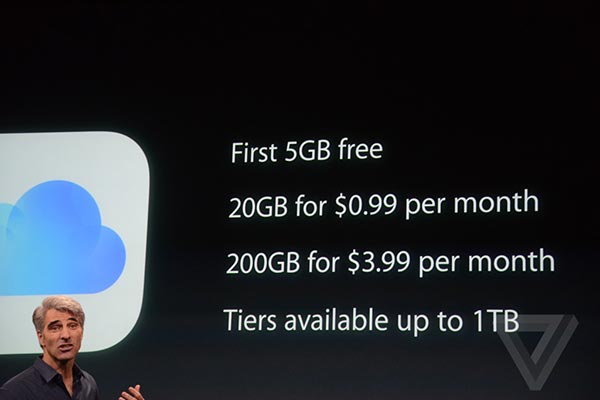 雲存儲空間開始5GB免費,20GB需要0.99美元一個月,200GB需要3.99美元一個月
