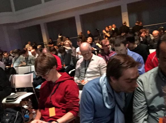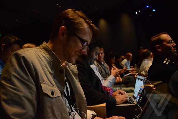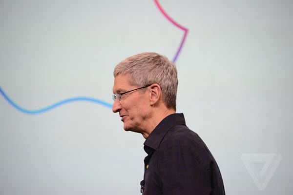 前方的記者表示庫克正在到處閒逛,看上去很冷漠。