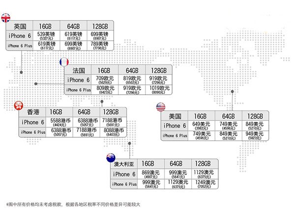 同時,首批上市的國家和地區包括 美國、加拿大、法國、德國、英國、中國香港、日本、新加坡和澳大利亞,中國大陸無緣iPhone 6/6 Plus首發,各種媒體的節操紛紛掉了一地。