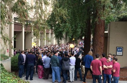 場外有人在游行,抗議蘋果員工工資太低,這是啥情況?