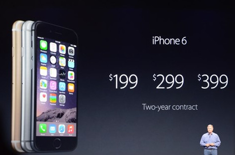 價格依舊不變合約機 iPhone 6 還是199、299、399美元,iPhone 6 Plus 299/399/499美元,從 9.12 開始預售。