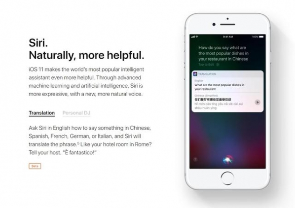 蘋果通過智能學習技術,讓 Siri 的語音語調變得更加自然、更接近真人語言節奏。beta 版的翻譯功能現身,目前支持英文與中、法、德、意、西五國語言的語音翻譯。