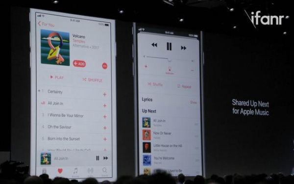 Homekit新增了音箱這一配件種類,並提供多房間音頻的調整功能,以配合此次發布的 HomePod 智能音箱。另外還在播放界面中,加入類似 KTV 點歌的設備間 “下一首曲目” 分享功能。