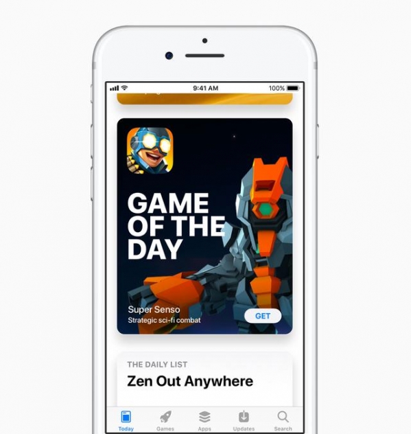 App Store的整體設計迎來一次大幅改動。五個頁面中的前三個,從原先的“精品推薦”、“類別”和“排行榜”,改為“今天(Today)”、“游戲”和“應用”。