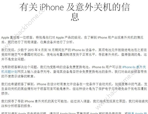 天啦噜,被iphone6s自動關機的原因給震驚了,此前因為iphone6s自動關機的事情,用戶真實操碎了心,在公布了iPhone 6S免費更換電池政策之後,蘋果又在今天晚上公布了iPhone 6S意外關機事件的調查結果。