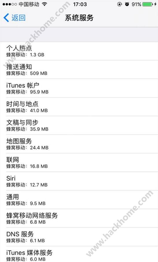 蘋果的系統服務需要消耗一定的流量,比如“設置”、“itunes賬戶”、“查找我的iPhone”、“Siri”、“Apple ID”等功能,具體可以在【設置】-【蜂窩移動網絡】-【使用無線局域網與蜂窩移動的應用】-下滑找到【系統服務】查看。