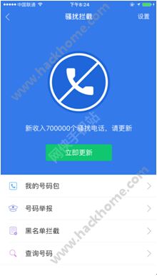 打開騰訊手機管家騷擾攔截功能界面,下載更新攔截號碼庫。