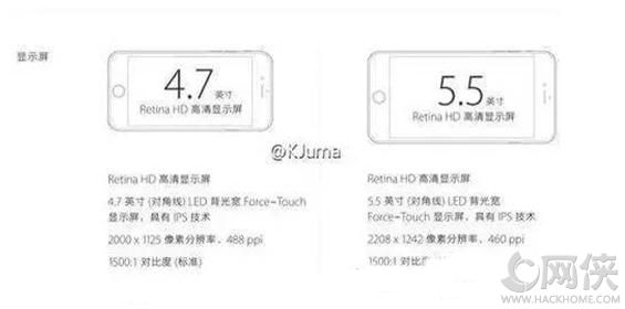 按照網友在微博上放出的屏幕參數截圖顯示,iPhone 6S和6S Plus均采用了Retina HD高清顯示屏,並加入了Force Touch技術。不過令我們驚訝的是,這兩款新iPhone的屏幕分辨率頗為奇葩,6S的分辨率為2000×1125像素,像素密度為488ppi;6S Plus的分辨率則是2208×1242像素,像素密度460ppi。至於屏幕尺寸則與前代相同,分別為4.7英寸以及5.5英寸。