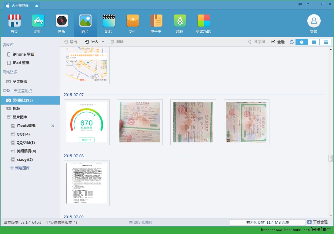 4、在“圖片”菜單中可以對本地圖片和手機相冊中的照片進行整理和預覽,對自己不喜歡的照片進行一鍵刪除,當然,該菜單中還可以在網絡中浏覽自己喜歡的壁紙。同步推,在照片管理方面非常方便快捷~
