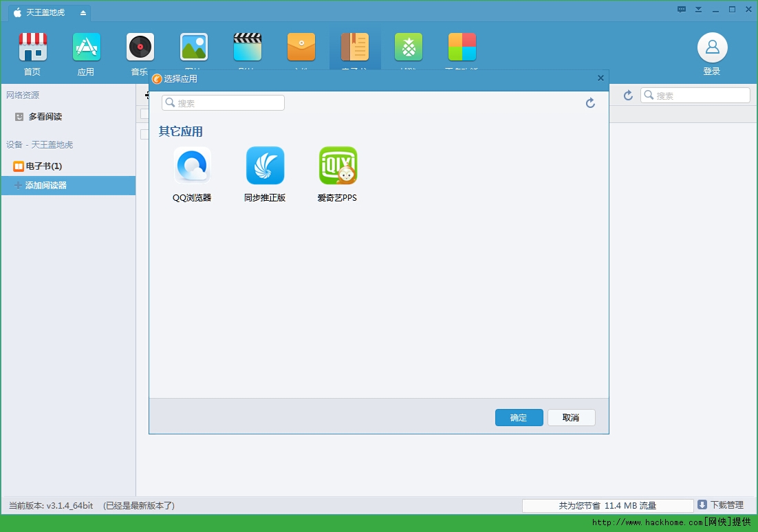 7、在“電子書”這個欄目中,用戶可以對自己喜歡的電子書進行同步添加,還可以下載不錯的閱讀app和浏覽器app,讓你的手機中有幾部不錯的小說~