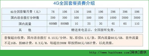 從整體來看,這四種套餐都分為76元、106元、136元、166元、196元、296元、396元、596元八個檔位,而這本身就是聯通4G全國套餐資費,各檔位套餐細節如下圖: