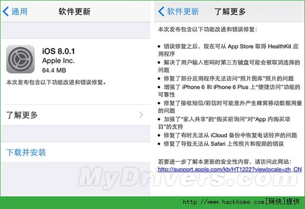 iOS 8.0.1更新內容: