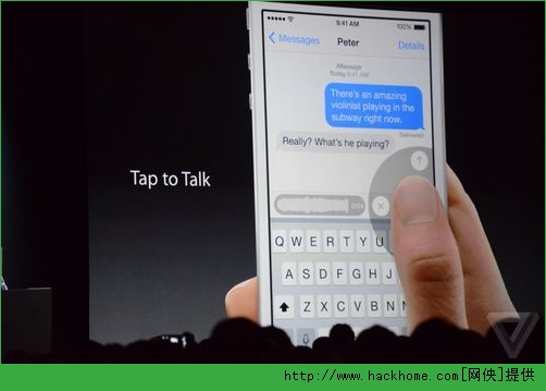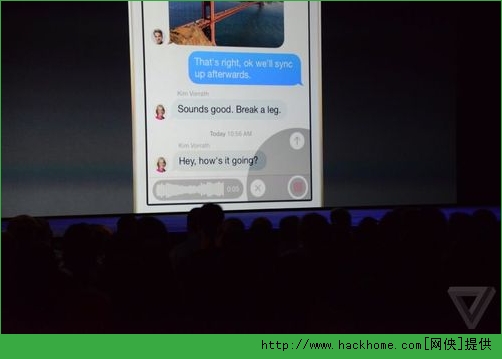 今天清晨,蘋果WWDC2014世界開發者大會正式拉開帷幕,全新的ios8系統正式亮相,在這次的iOS8很特別的一個新功能,短信界面除了可以發送文字和圖片之外,現在終於可以直接錄制語音或者視頻並直接發送給對方,這是蘋果打算干掉微信的節奏麼,企鵝是不是該顫抖了呢....